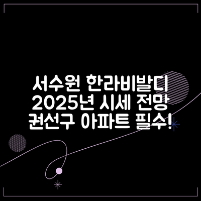2025년 10월 경기도 수원시 권선구 당수동 서수원한라비발디3단지 아파트의 시세 전망에 대해 분석해보겠습니다.