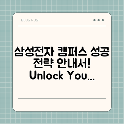 여러분, 삼성전자 캠퍼스에서의 여러분의 미래를 상상해본 적 있나요? 그곳은 단순한 일터가 아니라, 성공의 발판이 되는 장소입니다. 성공적인 커리어를 쌓기 위해 필요한 전략들을 배우고, 경험하는 기회를 제공하는 특별한 곳이니까요.