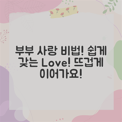 이러한 요소들을 가지고 관계를 더욱 풍부하게 만들어가는 것이 좋습니다. 부부가 함께 성장하며 뜨거운 사랑을 지속할 수 있도록 지원하는 다양한 방법을 고민해 보시기 바랍니다.