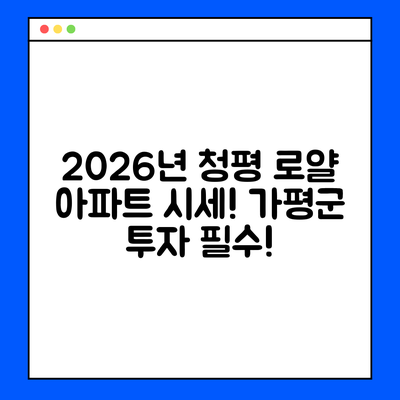 안녕하세요, 여러분! 오늘은 경기도 가평군 청평면의 청평로얄 아파트에 대해 이야기해볼까 해요. 이곳은 2026년 1월 시세 전망이 무척이나 기대되는 지역인데요, 주거로써 뿐만 아니라 투자처로서도 각광받고 있는 이유를 함께 알아보아요!