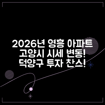 요즘 부동산 시장의 변동성이 크죠? 그런 상황에서 2026년 1월 고양시 덕양구 주교동 영흥 아파트의 시세에 대한 정보는 매우 중요합니다. 앞으로의 매매가를 예측하며 적절한 구매 시기를 고민하는 당신에게 몇 가지 이야기해드리고 싶어요.